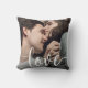 This adorable pillow features the word "love" in a modern white script with the couple's photo displayed behind. Choose the background colour of the back of the pillow to match your photo or decor.