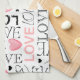 Beautiful pink and black design on a kitchen towel. The towel has an all-over design with the word "love" and hearts in black and pink. Great for Valentine's Day, Mother's Day or just because.