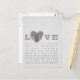 This greeting card features a list of words or saying relating to love or political view of love. The fingerprint heart is to represent how love is unique to everyone