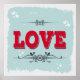 Vintage love illustration with floral and heart decoration on blue background in grunge frame