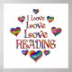 Show your love for reading with this fun design colourful hearts and the words - I Love Love Love Reading.