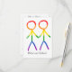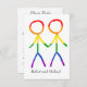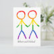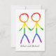 This RSVP card features a beautiful and simple design to include with your wedding invitations. The graphic depicts two men, in the form of elegant stick figures, holding hands. The figures are coloured in a beautiful rainbow, symbolising love and diversity. This card is a wonderful way to bring a cohesive and meaningful touch to your stationery while providing guests with a clear and elegant way to reply.