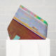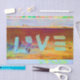 Love hippie boho brown green yellow pink craft decoupage tissue paper. Groovy bohemian vintage retro sixties gift wrapping. Rustic country colourful summer design. Decorative art. Image copyright Marg Seregelyi Photography.