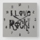 Cool musical themed wall clock. With the wording, I Love Rock in black text on a grey background. Fun skull heads are in place of the letters o. Numerals are in a cool rock font. PERSONALIZE with YOUR saying or company name (insert in place of my sample text). Fun clock for a bedroom, family room, dorm room, etc. Design layout by TamiraZDesigns. Visit my Store to see more original items: www.zazzle.com/tamirazdesigns*