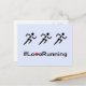 Don't just enjoy running: #LoveRunning! A postcard for anyone - a marathon runner, triathlon or track athlete, cross country runner, or for someone who just likes to jog to keep fit. Simple text in black with a red heart, creating a hashtag slogan. Three pictogram runners above, on a pale blue background.
