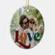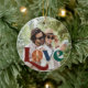 Trendy modern retro love typography photo overlay keepsake Christmas tree ornament for a new couple. ++++++++++++ Personalise it with your picture, name and text.
