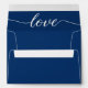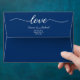 Simple, elegant, and modern, the love script with long tailed embellishments add a romantic feel to these wedding envelopes. Personalise the bride and groom names and return address, blue envelope with outer colour and lining. Featuring the "love" script. An elegant inner envelope.