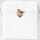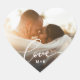 This heart shaped sticker features the word love in an elegant, stylish script over a custom photo with initials of the couple, set in a simple, modern font. This design features a single photo.
