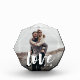Create a sweet keepsake of your wedding, honeymoon or special moment with this uniquely shaped custom acrylic block that's perfect for couples Add a favourite photo, with "love" overlaid in casual brush script hand lettering, and your initials beneath.