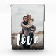 Create a sweet keepsake of your wedding, honeymoon or special moment with this uniquely shaped custom acrylic block that's perfect for couples Add a favourite photo, with "love" overlaid in casual brush script hand lettering, and your initials beneath.