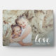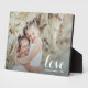 This charming tabletop photo plaque has a built-in easel for frameless display of your favourite photo. Features the word LOVE in a beautiful white script (can be deleted or changed) and any other information you want to include. Create a keepsake to give as gifts or for yourself.