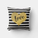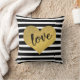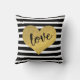 Pretty Sofa Pillow: Chic Gold Faux Metallic Heart Design/Whimsical "Love" Typography/Stylish Black And White Stripes Background