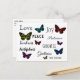 This whimsical save the date postcard features the fruits of the Spirit from Galatians in the Bible--love, joy, peace, patience, kindness, goodness, faithfulness, gentleness, and self-control--in fancy fonts, interspersed with bright multicolor butterflies. A great postcard for any church or Christian event. Can be used for invitations or announcements.