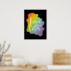 This poster features an inspirational quote in a handwritten script that says "Love sees no colour" against a rainbow watercolor background.