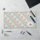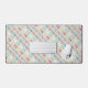 LOVE this desk mat! It's large! It fits across my desk. No need for a small mouse pad now! Color and print are excellent. Quality seems to be excellent too. Delivery was about 3 days sooner than expected. I think this is one of my favorite Zazzle products! Excellent. The color is vibrant and true to what I expected.