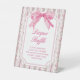 It is sturdy than I expected. Was worried about the material being flimsy but it is not. It is printed on some sort of plastic material. It should serve well at our wedding as long as wind isn’t too bad. Otherwise we will put some paper weights behind it and should be fine.