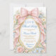 Celebrate a beautiful new beginning with this elegant Coquette Baby Shower Invitation featuring soft pastel florals, a romantic pink satin bow with delicate lace details, and an ornate vintage-style frame. The charming watercolor flowers in blush pink, cream, and soft blue create a dreamy garden aesthetic perfect for a sophisticated baby shower celebration. This design blends timeless elegance with a modern coquette style, making it ideal for welcoming the mom-to-be in a stylish and memorable way. Matching items available.