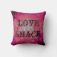 Decorative pink pillow with black design and print 'love shack'