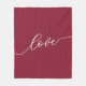 A minimal and simple design featuring the word "love" written across the center of the pillow in a delicate, flowing script. The script has elegant swashes that extend horizontally to the edges conveying a sense of motion and joy.