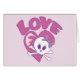 Cute skull and crossbones on a pink heart with LOVE text. This is a girly skull that's adorable for ladies and kids.
