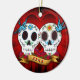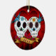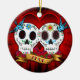 This is the second version of our "Love Skulls" design, and a great gift idea for Valentine's Day! Calaveras are surrounded by tattoo style roses. Banner reads "Amor". You can customise this ornament by adding text too.