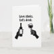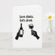 This card uses a simple black-and-white look with one pop of deep red to set the mood. Near the top center, the text reads “Love stinks. Let’s drink.” in thick, rounded, sans‑serif letters in black. Beneath the words, two black silhouetted hands rise up from the bottom edge like they’re reaching into the scene. The left hand grips a slim wine bottle with a blank label, and the right hand holds a wine glass. The glass is filled with dark red wine, which stands out as the only color on the whole front. It feels like a funny, honest way to say you’re in it together, whether you’re laughing about dating or just taking a break from it 🥰. It’s a meaningful card to give a friend or partner who appreciates a little sarcasm with their affection ❤️, and it’s an easy way to share Valentine’s Day sentiments.