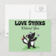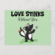 Funny Skunk Design with the words Love Stinks without You. This design features a black and white skunk holding a flower. Fun gifts to give to your sweetheart.