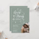 A love story begins ! Come and celebrate the bride to be big day! Our bridal shower invitation features a white editable script typography lettering and half arch photo on sage green.