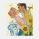 Artist:Bernard D'Andrea | Red-haired lady kissing man behind sunflowers with a blue chair and a cat.
