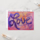 Painting of the love "Love" in lavender purple script with pink glitter sprinkle over it. The background is of soft pinks and peach like the twilight of a beautiful sunset. This painting comes in two variations with in either "Twilight" (Pink) or "Golden Glow" (Orange). Personalise this Love Word Invite using the "Customise It" button. Make custom invitations with our own text or images. These Love invitations or announcements are great for weddings, engagements, showers, baby girl birth, anniversary, or holidays like Valentine's Day!