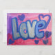 Painting of the word "Love" in cotton candy blue against a pink and purple bubble gum colored background. Purple and blue hearts dance around the letters. There is a light layer of blue and silver glitter over the top. Personalize this Love Word Invite using the "Customize It" button. Make custom invitations with our own text or images. These Love invitations or announcements are great for weddings, engagements, showers, baby girl birth, anniversary, or holidays like Valentine's Day!