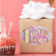 Watercolor painting of the golden yellow word "Love" with a double heart. Pink and purple highlights the letters and heart. A light splash of glitter across the top gives the painting a sparkly glow. Personalise this love word art sticker with your own text and images using the "Customise It" button.