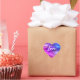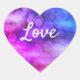 Love text heart shape cool filtered circles pattern sticker with blue, purple, pink random abstract splats. Perfect gift for lovers on birthdays, anniversaries' or Valentine's Day.