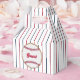 Love and Thanks, Baseball Cookie-GUEST FAVOR BOX-An allover red, white and blue pinstripes background covers the entire box. On the front side is an iced blue and white baseball cookie with iced text that reads: Guest. The cookie can stay or be removed by you. On the back side is a decorative word art text embellishment with a small red heart. The text image on back reads: Love and Thanks with a red heart embellishment. The background pinstripes cover the entire box. This design is suitable for any baseball themed party event. The design is available with a blue and white iced cookie or a red and white iced cookie.