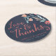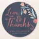 Love & Thanks Bluish Chalkboard Floral Wedding Round Paper Coaster