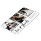 This modern simple card features a 3 photo collage on the top. The words "love & thanks" in a hand-lettered font.