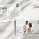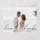 A modern and elegant photo thank you postcard designed to accommodate your favourite horizontal or landscape orientated wedding photo with "love and thanks" as a soft black script text overlay. Personalise with your names and/or wedding date beneath.