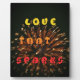 The "Love That Sparks Abstract Art Design Print" is energetic and passionate, conveying a message of vibrant love and celebration. The harmonious combination of warm colours, abstract fireworks, and stylised text results in a visually appealing and memorable design.
