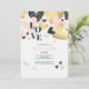 An array of gold, pink and black hearts cascade down the front of this trendy invitation along with the word "love". Ideal for an engagement celebration or a Valentine's Day party. (<a href='http://www.freepik.com/free-vector/hearts-valentine-background-with-golden-details_1017577.htm'>Designed by Freepik</a>). <br/><br/>The card is easy to customise with your wording, font, font colour and choice of six paper types.<br/><br/>Not exactly what you're looking for? All our products can be custom designed to meet your needs at no extra charge.<br/><br/>Simply contact us at heartfelthelper@gmail.com<br/><br/>Coordinating products available: