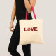 Love tote bag with a paw print illustration placed in the place of letter O. Cute budget tote for cat moms and other pet owners and animal lovers.