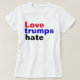 If you don't like Donald Trump and dislike his message of hate and division you need to wear this political women't tee shirt and let those Trump supporters know that love trumps hate. Show them you're not a hater and that love, not hate is the way to fix our issues. The perfect tee shirt for voters who are anti trump and pro Hillary Clinton in the upcoming 2016 election.