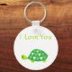 Love Turtle keychain. Customisable keychain has a cute green love turtle with the words I Love You.