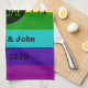 Love is Love Typography Logo Lesbian Gay Pride Original 8 Stripes LGBT Rainbow Flag, you can add name and date, Kitchen Towel