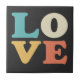 LOVE typography in a retro colour square design. Black added to background, but can be altered to your own choice of colour.