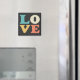 LOVE typography in a retro colour square design. Black added to background, but can be altered to your own choice of colour.