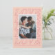 This trendy Valentine's Day card features a bold, minimalist typographic design using the word "Love". A photo frame with a white border is placed over the lettering, allowing just enough the word to be visible and legible. There is space for a custom holiday greeting beneath the typographic design. The back side of the card features a coordinating heart pattern.