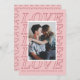 This trendy Valentine's Day card features a bold, minimalist typographic design using the word "Love". A photo frame with a white border is placed over the lettering, allowing just enough the word to be visible and legible. There is space for a custom holiday greeting beneath the typographic design. The back side of the card features a coordinating heart pattern.