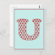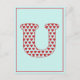 A beautiful and simple postcard to say I love You. The letter U outlined in red with an infill print of red hearts printed on a pale teal background.
