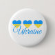 Love Ukraine design with three bright yellow and blue hearts representing love for the Ukrainian people and Ukraine written in blue. It's offered here on a custom round button. You can add a different background colour instead of the white if you prefer. Show your love and support for Ukraine with this cute design. Pin it to your shirt, bag, or hat.