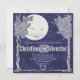A line drawing in off-white of a whimsical smiling full moon in a starry sky looking down into a clearing between two trees whose roots intertwine in the centre of the design to form a love heart. Where applicable, the names of the bride and groom are separated by a vintage stylised ampersand over an intertwined vine motif. The opaque, slightly distressed background design gives a vintage feel and the floating quality of the design allows for your choice of background colour so that one can co-ordinate products with your special day's theme. The design works best on dark coloured backgrounds.